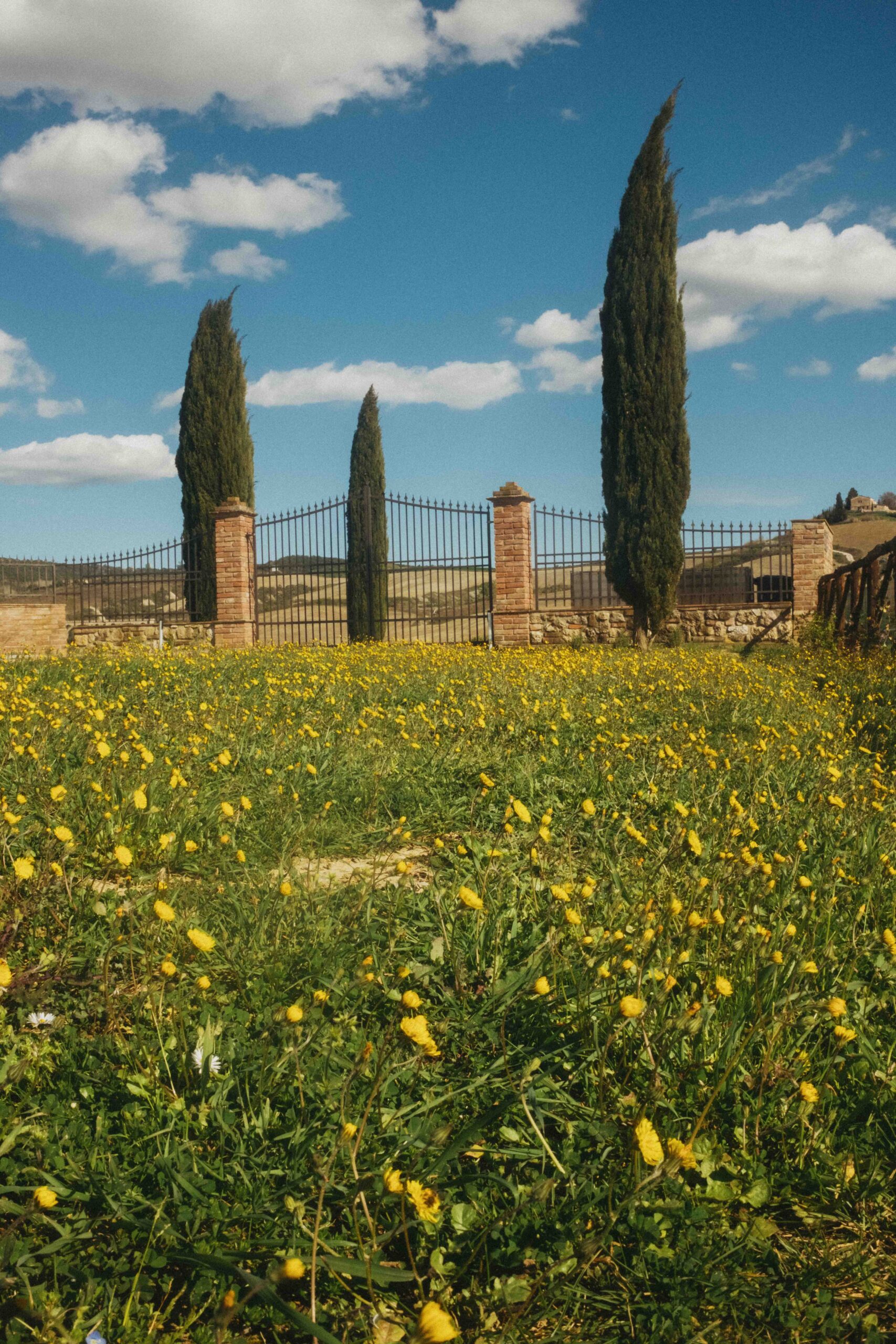 The landscape around Podere Fossaccio Casa Olivo changes with the seasons. In spring, the fields turn lush and green, full of life and movement. Summer brings warm, golden hills under the Tuscan sun.